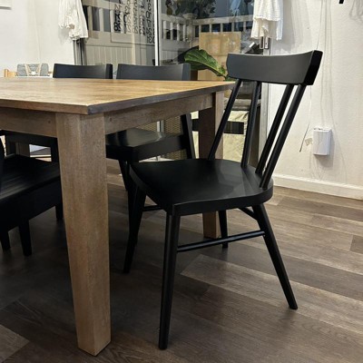 Purchased 10 (5x2) of the black Windsor dining chairs. They are beautiful, well made, sturdy, and easy to put together. Plus, you cannot beat the price! We matched them with a wood farmhouse table and they look fabulous. Even at the holidays Plank & Beam delivered quickly to our home, we were truly so pleased and will recommend to all of our family and friends. If you are looking for great style and comfort purchase these chairs.