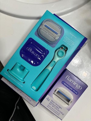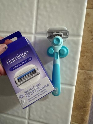[This review was collected as part of a promotion.] I have another style of Flamingo Razor and I feel like the blades with the added moisture creates a lot of slime like goo during the first few times using the razor. I had an issue with the base that sticks to the shower. It fell down despite my efforts to hold pressure when attaching— I ended up just sticking it in a random place after it fell and walked away - did not try to use the holder for a week and it seemed to work. I will say that after a week the blades are still sharp and do not cause any razor bumps or cuts.