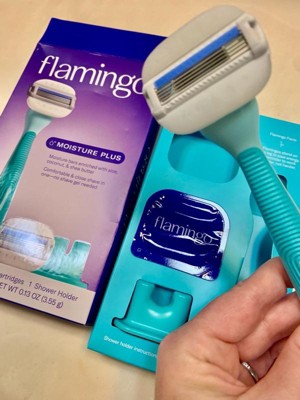 [This review was collected as part of a promotion.] This razor is a very similar style as the Gillette Venus comfort glide but better. I'm prone to razor bumps and usually prefer literally any men's razor above the ones marketed to women but this Flamingo one really surprised me. It left me with a close shave and smooth skin without any nicks or cuts and without missing any hairs. I also like that it came with a mount(?) for the shower so it's not just sitting on the edge on my tub. I've used it every other day for a couple weeks already and haven't noticed any ingrowns or razor bumps. No shaving cream needed, this razor might just have me sold again on women's razors. I received this product and refills to test out from Influenster, but this is absolutely my honest opinion.
