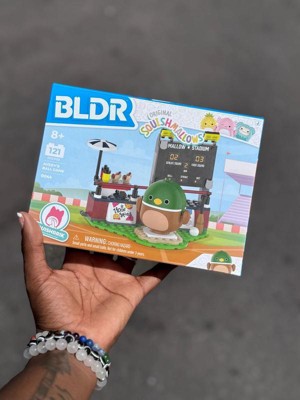 Take a trip to the ballpark with Avery! This first-of-its-kind Squishmallows buildable playset, modeled after a perfect day at the ballgame, features a ’Mallow Stadium scoreboard and hot dog stand. Play with or display the included Squishmallows buildable figure Avery—featuring a squishable belly powered by SquishBrik by Original Squishmallows—hitting home runs, adding mustard to his hot dog, or wherever your imagination takes you! BLDR bricks are compatible with all major construction brands, ensuring endless possibilities for creativity. Join the Squishmallows Squad with this exciting playset—perfect for kids and fans who love to build, imagine, and play!