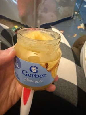 [This review was collected as part of a promotion.] We recently tried the Gerber Pineapple baby food, and it was a bit of a mixed experience. The smell is absolutely wonderful—bright, tropical, and genuinely fresh, which gave me high hopes. However, the texture was a little odd, almost too chunky compared to other Gerber fruit purees we’ve tried. My baby didn’t enjoy eating it on its own and made a face every time I offered it. That said, I didn’t want to waste it, so I got creative and used it as a base for tropical baby popsicles along with banana and coconut milk. In that form, it worked beautifully—flavorful, and refreshing, especially on hot days. While I wouldn’t purchase it again just to serve by the spoonful, I would consider buying it again specifically for recipes or mixing into other foods. It has potential, just not as a standalone meal.