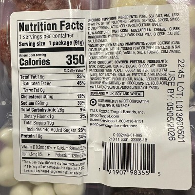 Teeny Tiny Lunch Bites Uncured Pepperoni, Mozzarella, Dark Chocolate Covered Pretzels & Yogurt Covered Raisins 3.2oz - Good & Gather™
