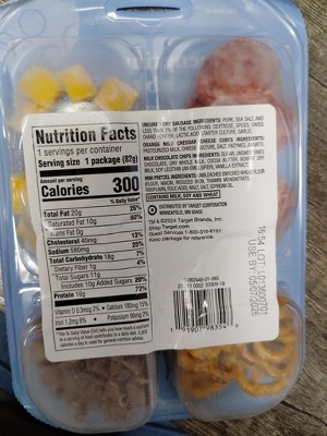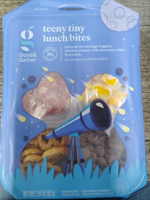 Teeny Tiny Lunch Bites Uncured Dry Sausage Nuggets, Cheddar Cheese, Milk Chocolate Chips & Pretzels 2.9oz - Good & Gather™"