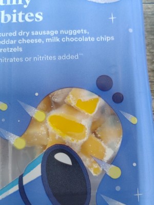 Salami in it is so rubbery and gross! Super salty too; the hillshire or Sargento packs are wayyyy better. Literally only ate the chocolate chips and the pretzels. The cheese also has zero flavor