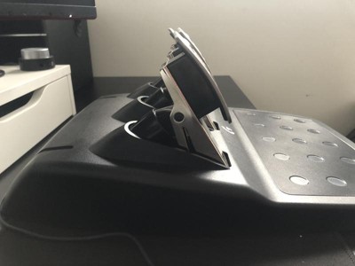 Wheel is great, and the gas anc clutch pedals offer the right amount of resistance, but I can't understand why the brake pedal has almost no give at all. It's unusable as a brake.