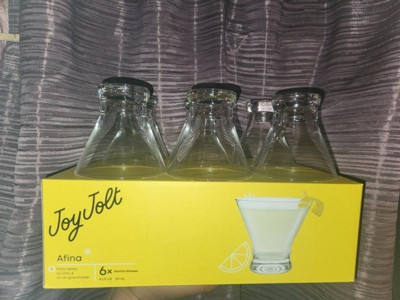 [This review was collected as part of a promotion.] #influensterpro #influenster @influenster @joyjolt #joyjoltafina Joy Jolt Afina stemless Martini glasses come in a set of 6 8.5 oz glasses, beautifully packaged, if given as a gift. Perfect for Martinis, cocktails, or anything you're heart desires! Think out of the box...hors de vors, shrimp cocktails, nuts....so versatile. Nice and sturdy, well made, won't easily tip and dishwasher friendly. Perfect for all your entertaining needs.