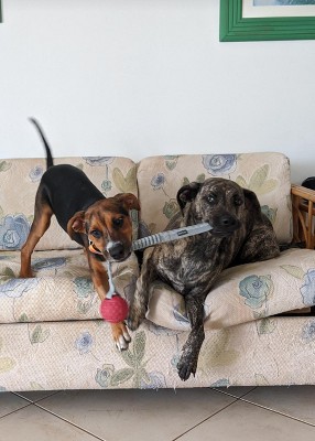 My pup has been playing with this toy for 4 years, and it's still his favorite. If your dog likes to carry a ball, thrash a toy, fetch, tug-of-war with people or pups, then this is the toy for them. Durable, compact and fun. The bungee of the handle assures me I won't have to worry about injury when he's tugging and makes it easier on my end. If you don't already have one, get one. Veterinarian approved