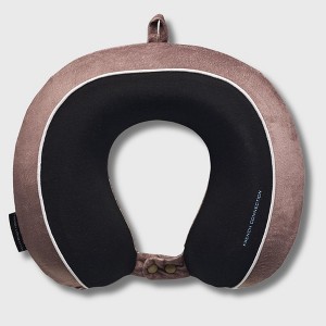 French Connection Memory Foam Travel Pillow with Washable Cover - Luxury Neck Pillow in Brown
