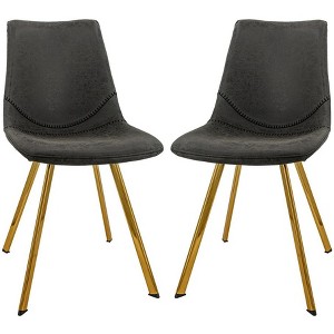 Product Name: LeisureMod Markley Dining Chair Modern Upholstered Leather with Gold Legs Set of 2 in Charcoal Black