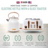 Haden Heritage 4 Slice Wide Slot Stainless Steel Toaster Bundled with 1.7 Liter Stainless Steel Electric Water Kettle, Ivory & Copper
