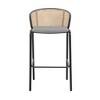 Product Name: LeisureMod Ervilla Mid-Century Modern Wicker Bar Stool with Fabric Seat and Black Powder Coated Steel Frame, Set of 2 in Grey