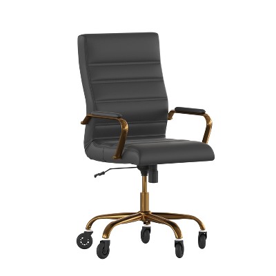 LeisureMod Harris High-Back Office Chair, Leather Upholstery with Adjustable Height, Lumbar Support, Swivel Seat and Gold Base for Home or Office