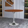 Product Name: LeisureMod Dining Table with a Round Manufactured Wood Tabletop and Black Stainless Steel Pedestal Base Verve Collection in Cognac Brown
