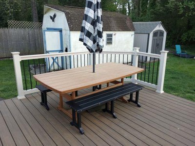 We just got our deck redone in trex. Had the picnic table for about 5 years. Love the black benches. They look perfect