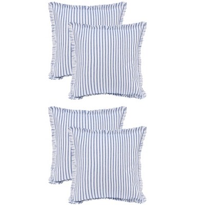 Unique Bargains Modern Farmhouse Decorative Neutral Striped Boho Square Pillow Covers 4 Pcs 16" x 16"/18" x 18" Blue