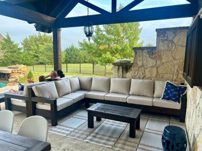 The thick brown stripes look washed out in person. The colors of this rug are not as vibrant as it appears online. The rug is very thin, and doesn’t lay flat compared to another outdoor rug of a similar size and price that I recently ordered. In disappointed, but at least the price was good.