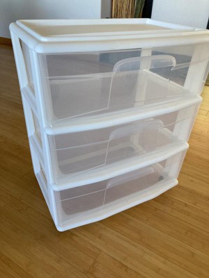 [This review was collected as part of a promotion.] This is the plastic 3 clear storage drawer container. I like that this has wheels to the bottom of it for I can easily roll it anywhere in my home. I like that the drawer are clear plastic for I can easily see what I have in there without having to open it all the time. I will recommend this product to anyone.