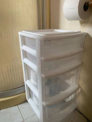 Homz Clear Plastic 4 Drawer Medium Home Organization Storage Container Tower w/2 Large and 2 Small Drawers, and Removeable Caster Wheels