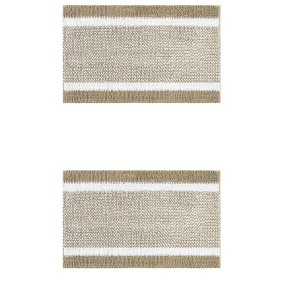 Unique Bargains Chenille Striped Soft Plush Non-Slip Shaggy Bathroom Rug Mat 2 Pcs Khaki 16" x 24"/20" x 32"