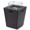 Fire Pit Dimensions: 32.44" H x 21.65" W x 21.65" D • Burning Area: 2.36" H x 11.81" W x 11.81" D • Base Height (without glass): 26.18" • Fuel Hose Length: 27.56"