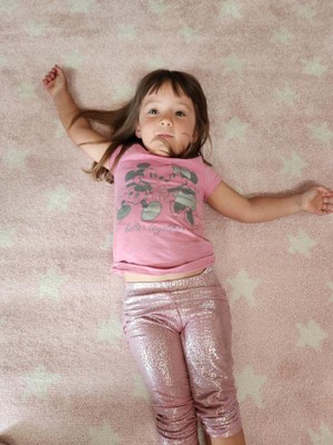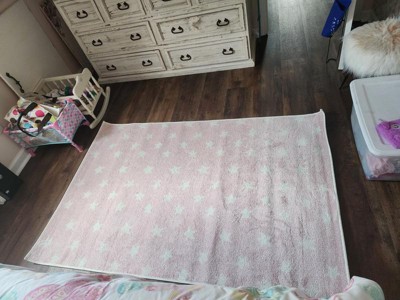 [This review was collected as part of a promotion.] We love this rug! It is just the right size for a kids bedroom. The pink color is a bit softer in color than what is pictured but we love it! This rug feels super soft and will be the perfect place for kids to play.