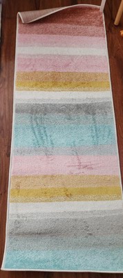 [This review was collected as part of a promotion.] This runner is so pretty. And my daughter is so excited to have this in her room. Even though it is low pile, it's surprisingly soft. And the colors are soft, too. These pastel colors would look great in any kids room.