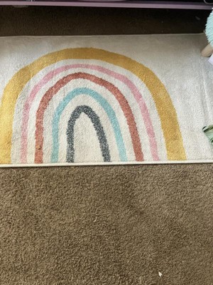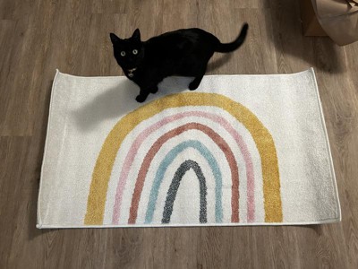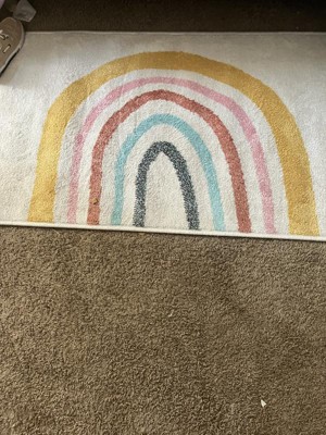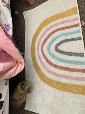 [This review was collected as part of a promotion.] I really love this Unique Loom Whimsy Kids Collection rug. The rainbow print is bold and vibrant. The rug texture is very soft on bare feet and won't scratch sensitive skin. The rubber on the bottom sticks very well on tile floor and so far it's working our really great in the bathroom. I hope to get more from this collection in the future to match with my new rug like accessories of even other rugs. So adorable!