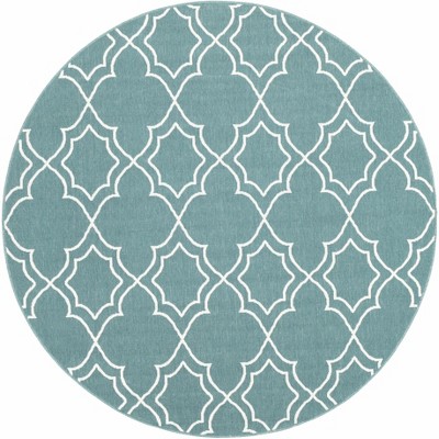 Livabliss Alfresco 7'3" Round Woven Indoor and Outdoor Area Rugs Teal