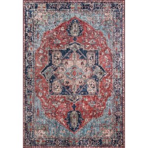 - * TRADITIONAL DETAILS: Rich with traditional details and captivating red and navy with sky blue accents, this Old-World rug design is anchored by a central medallion that draws the eye inward beyond a reverie of flower blossoms, pomegranates and ornamental motifs.