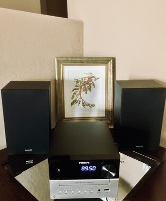 What can anyone expect from a "micro" stereo? Turns out, at least in Philips' case, more than you might expect. It's actually kind of shocking how good it is. In a small footprint, you've got bass-reflex loudspeaker ports with 3" woofers, which give you richer low tones, all to make the most of your 18 watts of output power. First, everything it says it can do, it does easily. Each feature works as expected, easy set-up (you will need to attach the speakers via their wires, which is very easy). The visual instructions make sense. Pairs up with my Apple Music perfectly. CDs sound clear and no fuzziness even on high settings, same for the radio stations and Bluetooth music. Virtually everything you can do with this system you can do via the remote (except eject CDs). The remote is like a TV remote in that it is super logical. In a pinch, you can adjust the volume with the lovely knob at the front, which has a very satisfying feel to it. Nice to know that if you damage or just can't find the remote, you can go to the manual buttons on the front. It has a clock, too, but luckily it's not constantly displayed so it won't glare at you at night. Just hit "clock" and it will show you the time. Bonuses? For one, it has a sleep timer function for 120-90-60-15 minutes, which from what I've seen is pretty unusual in a stereo of any size. So, you can fall asleep to guided meditation CDs or to some soothing Spanish guitar on the local classical station or whatever you like. For another bonus, you can change the sound mode to your liking. You have "balanced, bright, clear, warm and powerful." I find that warm is a nice middle zone, but clear is better if you prefer the vocals to be more upfront. Powerful will rock the room. :) Great price, surprising quality and super sleek looking. So much so that I bought a second one for the living room. It's more than adequate to fill up the space with beautiful sound. Enjoy!