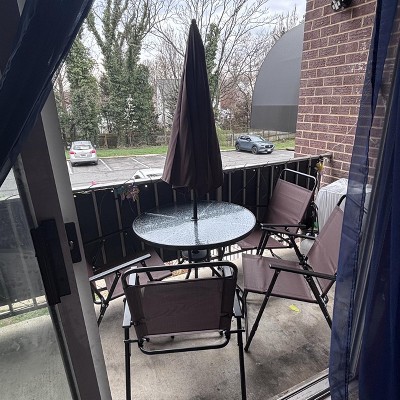 • Set in One Box: The package includes 4 folding chairs, 1 dining table and 1 umbrella. And the assembly can be completed in a short time with clear instruction and all necessary hardware. Enjoy your outdoor leisure time with this 6-piece patio furniture set.