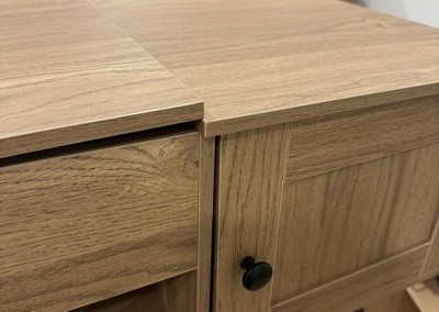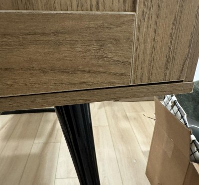 This table does not match the listing at all. The color is wrong the legs are black plastic, not the beige/natural wood shown and they are hollow and flimsy, not solid as advertised. The table feels unstable, the quality is very poor, and the doors don’t even align properly after assembly. This was misleading and disappointing, and I would like a refund.