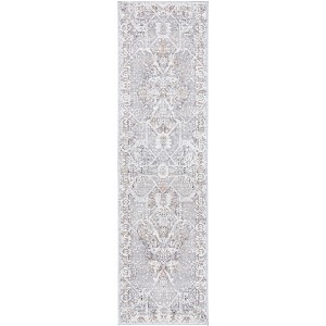 Elevate your hallway or elongated space with this exquisite 2' X 8' runner area rug, a harmonious blend of ivory and light grey hues. The traditional style of the design encapsulates timeless elegance, featuring intricate patterns that evoke an antique charm. At a comfortable height of 3/8", this power-loomed masterpiece exudes both luxury and durability.