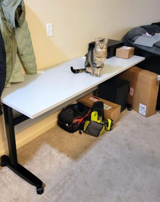[This review was collected as part of a promotion.] This table is so nice! This thing is built to last as well very heavy steel parts and solid heavy tabletop. It ended up fitting in my space perfectly, and my kitty also approves, lol. The instructions were just photos, and all the parts were lettered, but it was easy to understand, and it took just me about 45 min to put together. With 2 people, it would probably take half that time. It's the perfect height for sitting at or using the way I am as a table to put random stuff on. It has holes in the back of the table for cords to go through, which I love for my printer. It's on wheels, and the top flips up, so if I ever need to move it or store it, it will be a breeze. Also, it arrived very well packaged, and there was no damage at all, which was great being the box weighed a ton. Definitely needed 2 people to carry it in. All and I I love it and feel like it's going to last a long, long time. I highly recommend!