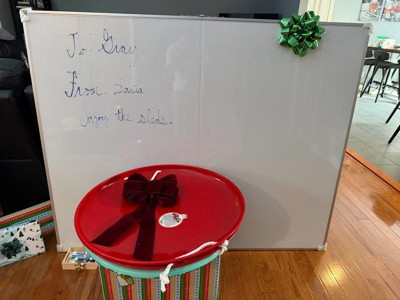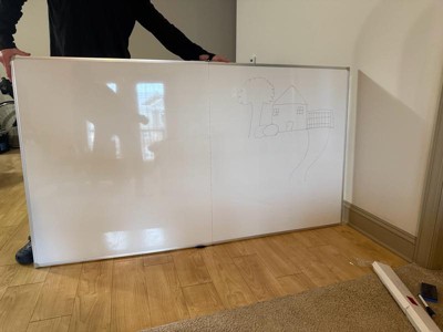 [This review was collected as part of a promotion.] We are in the midst of turning a backyard shed into a little classroom for my girls, and this whiteboard is going to work perfectly for it! It is HUGE but surprisingly lightweight, and I was able to carry the box from the front door down my basement stairs on my own. The whiteboard itself collapses in half, which makes it easy to store if needed. You can also technically use it on the floor by creating an angle with the two halves (as pictured). However, once the drywall is finished in our shed, this bad boy is getting hung up! Hardware is included, and it looks like quite a simple installation. For the size and quality (and included accessories), this is a great value. Highly recommend!
