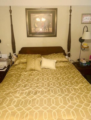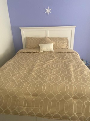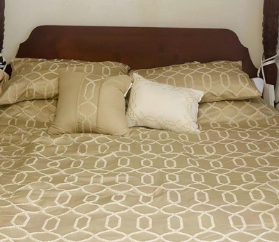 [This review was collected as part of a promotion.] The modern geometric design added a sophisticated look to my bedroom, while the comforter itself was incredibly soft and just the perfect weight for a cozy night. The color is more beige/champagne and less gold but none the less it’s beautiful. Additionally, the inclusion of multiple pieces in the set made it a complete bedding solution, saving me the hassle of searching for coordinating items separately. While the material is inherently soft, I found that washing the set before use helped to diminish any initial stiffness, enhancing the overall comfort and feel.