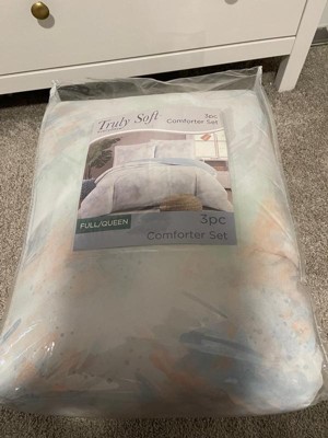 [This review was collected as part of a promotion.] Truly Soft Hannah Watercolor Comforter Set 3-Piece Full/ Queen Duvet Set contains 2 shams and a comforter. This set is made with high quality and is pretty comfortable. And it fits well on queen size bed. Watercolor print makes it more beautiful.