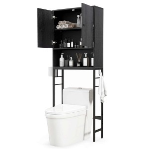 Costway Over the Toilet Bathroom Cabinet Floor Storage Organizer with Adjustable Shelves Black/White