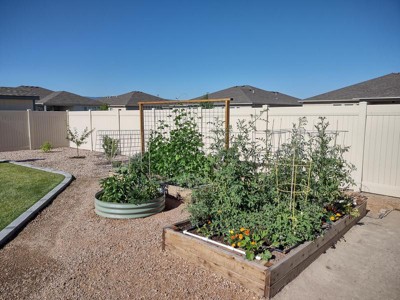 I chose the round one because it fit and still allowed a path, whereas corners wouldn't! It has become my pepper bed, and has 5 pepper plants in it!