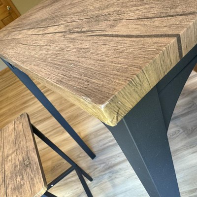 HOMCOM 3 Piece Bar Table and Chairs Set, Industrial Small Dining Table Set for 2, Square Kitchen Table and Stools, Rustic Brown and Black