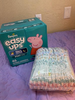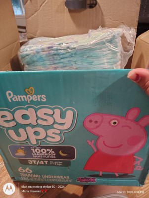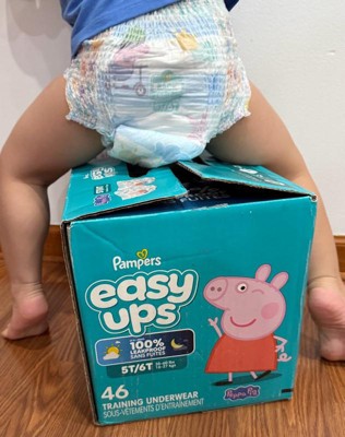 [This review was collected as part of a promotion.] I recently started using the 66 count pack of Pampers easy up in size 3T 4T and they have baited noticeable difference. The cotton lake materials incredibly soft against my toddler skin, providing an underwear-like feel without being stiff. Unlike some other trading pants. These have a slim fit that reduces bulkiness under clothes so my little one can move around easily. The absorbency is impressive, even for overnight use. Thanks to the built-in channels that lock away wetness when accidents do happen, the easy tear size make the change quick and mess free. Since they are fully disposable. I just roll them up and toss them. No fuss involved. The Peppa Pig designs are just the icing on the cake to keep things fun.✨