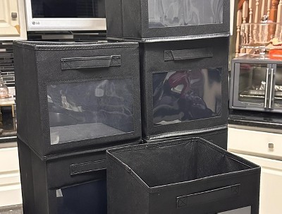 Great little storage cubes, I love the little clear window. This is great set, as you get a value of 6 sets. Perfect for storing toys, socks, etc. The little window is convenient as I store them in my 6 cube storage unit and it’s easy to access to what is in each bin.