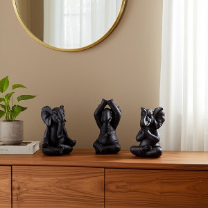 Product Name: Set of 3 Polyresin Yoga Elephant Figurines - Contemporary Black Table Decor For Home, Office, Yoga Studio, Spa - Yoga Lover Gift Idea
