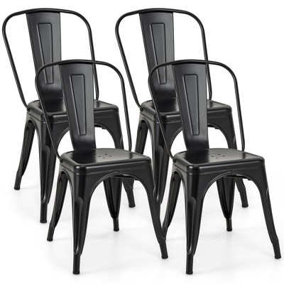 • [Comfortable Backrest] There is a detachable backrest on the metal chair. The backrest of the dining chair has four screws. When you're done using it, you can take it off. Chairs made of metal can be stacked to save up storage space. You'll have a comfortable dining experience thanks to the ergonomic backrest.
