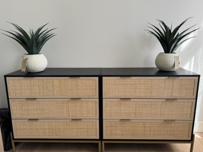 Nathan James Set of 2 Andrew 3 Drawer Rattan Dresser Black/Light Oak