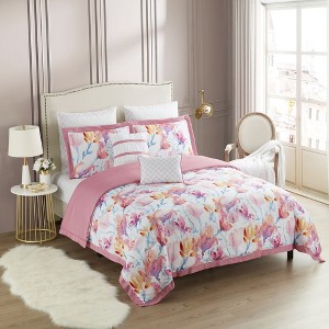 Includes: Queen Comforter, 2 Standard Shams, 2 Euro Shams, 2 Decorative Pillows