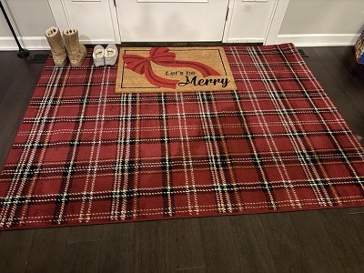 Best plaid Christmas rug! Don’t bother going to Amazon for the blankets disguised as rugs. It’s thick so you vacuum it easily, doesn’t shed, rich red color, stays in place, and is perfect for a Christmas rug that doubles as a place to catch the snow, ice and salt.
