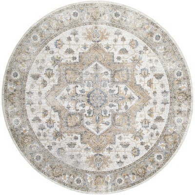 Nourison Astra Machine Washable 5'3" x Round Silver Blue Vintage Indoor Flatweave Rug