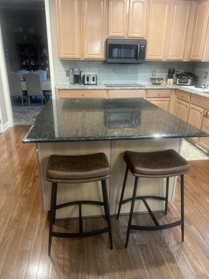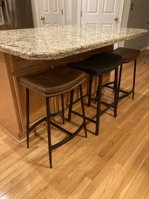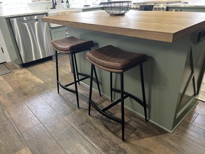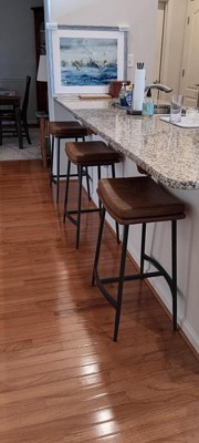 I ordered the barstools so that they would tuck neatly away under my kitchen bar/counter. The faux leather seats have a nice comfortable feel even though they are backless. Easy to put together with the tools provided. They seem to be very sturdy. They look just like the picture on website.