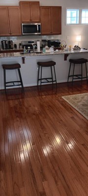 We bought our first set to try out in our new kitchen about a month ago. So far we like them a lot, they feel sturdy and comfortable. Assembly was very simple and easy. My only negative is that the feet of these stools are very narrow and will not allow for scooting on linoleum floors without leaving little indentions. Other than that they are very nice stools